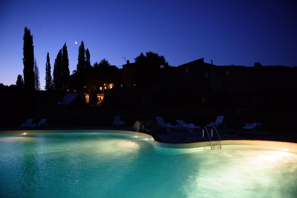 Inserito nella splendida campagna toscana tra Siena e Grosseto il complesso è un'antica e suggestiva grancia medievale immersa in un'incontaminata Oasi Naturale del Basso Merse, confinante con le Antiche Terme di Petriolo. Si estende su un territorio di oltre 1200 ettari fra ulivi, castagni, sugheri, olmi e ginestre in cui si aggirano in libertà bovini maremmani, cavalli, daini, caprioli e cinghiali. I vari borghi e poderi, con le suggestive strutture in pietra, ripropongono lo scenario di un villaggio medievale mentre gli appartamenti sono stati restaurati all’insegna del rispetto della tradizione