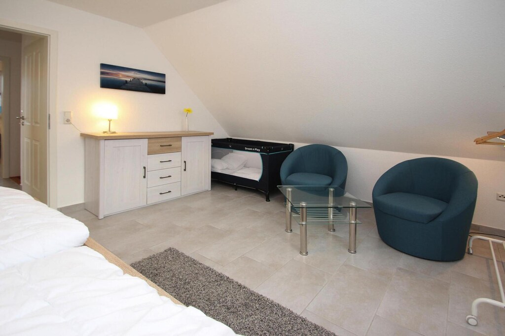 Attività nelle vicinanze: La zona è perfetta per lunghe passeggiate o gite in bicicletta sulla diga. Naturalmente anche un giro in barca è una parte essenziale della vostra vacanza nel Mare del Nord. Se non vuoi praticare la pesca d'altura (da Dornumersiel, a circa otto chilometri), puoi invece fare una gita di un giorno all'isola di Baltrum. Oppure puoi andare in canoa sull'Harketief, un piccolo fiume nelle vicinanze. Nelle giornate di brutto tempo nel nord della Germania, una gita al parco giochi indoor Sturmfrei offre tanta varietà per le famiglie con bambini. Gli adulti preferiscono l'oasi benessere, che offre diverse saune e massaggi rilassanti.