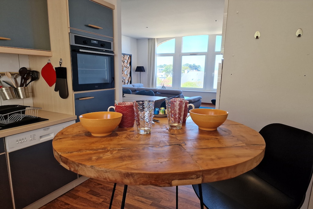 Questo grazioso appartamento, situato sulle colline di Primel, offre comfort, vista mare e un ambiente tranquillo all'interno di un piccolo residence di 12 appartamenti. Situato al piano rialzato, dispone di un'accogliente zona giorno con cucina a vista completamente attrezzata e due luminose camere da letto, una delle quali con vista sul giardino comune e su un'antica cappella. Gli ospiti possono usufruire del giardino comune del residence, con un piccolo set da giardino e un barbecue per pranzi all'aperto. Sono disponibili ampi posti auto per la massima comodità.