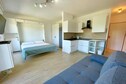 Entrate nella cucina a vista, attrezzata con tutto il necessario per preparare deliziosi pasti. Adiacente si trova l'accogliente soggiorno/camera da letto, dotato di TV, divano letto singolo e una comoda area salotto dove potrete rilassarvi dopo una giornata di esplorazione. L'appartamento è arredato con cura e dotato di lavatrice e aria condizionata, per garantire il massimo comfort al vostro soggiorno. Tuttavia, il momento clou della giornata vi attende all'esterno, sulla vostra terrazza privata, dove potrete godervi tranquille mattine con un drink a vostra scelta, immersi nella tranquillità.