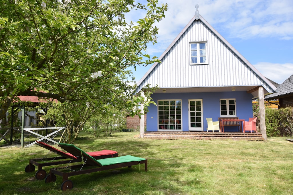 Questa affascinante casa vacanze estiva invita gli ospiti a godersi un tranquillo rifugio a pochi passi dalla splendida baia di Salzhaff, sul Mar Baltico. Immersa in un ampio giardino ricco di alberi da frutto maturi, siepi di lamponi e arbusti, la proprietà offre un'atmosfera rilassante, impreziosita da un grazioso padiglione da giardino. L'accogliente casa dispone di due camere da letto accessibili tramite una scala a chiocciola e di un accogliente camino, perfetto per rilassarsi dopo una giornata di esplorazione.