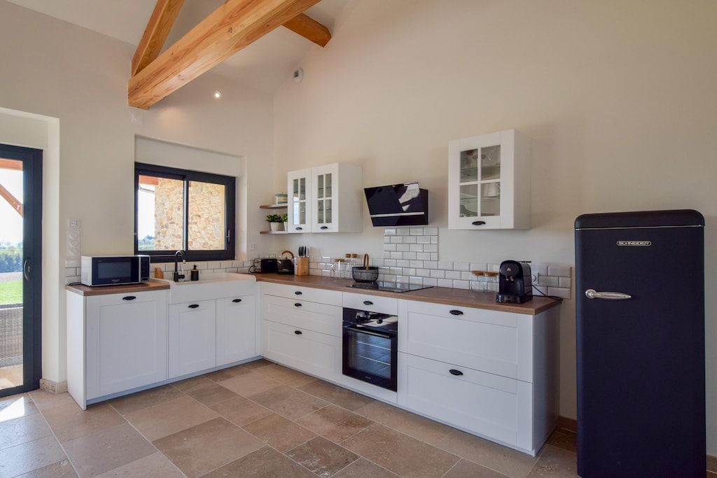 Disposta su un unico livello, La Dorioterie offre una luminosa zona giorno e pranzo con cucina completamente attrezzata, che si apre su una terrazza coperta. Comprende tre camere matrimoniali con bagno privato, di cui una con letti a castello. All'esterno, la piscina privata riscaldata invita a rilassarsi godendosi il panorama eccezionale. Le camere sono dotate di aria condizionata per un comfort ottimale tutto l'anno.