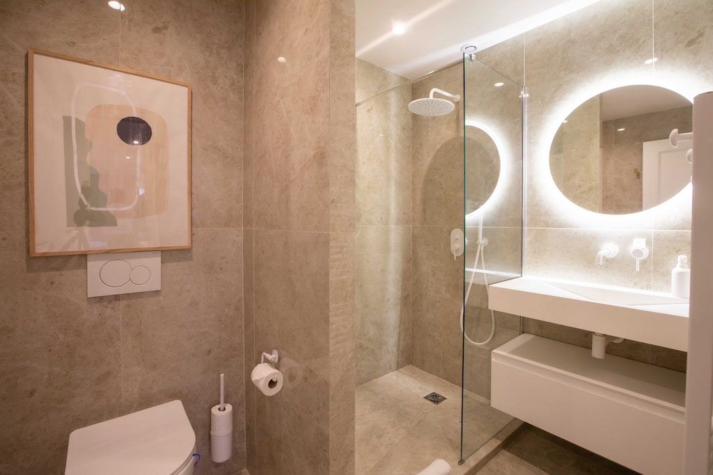 I due bagni sono progettati pensando alla funzionalità, ciascuno dotato di doccia e WC. Questa configurazione aumenta la praticità, in particolare quando si ospitano più residenti. La presenza di doppi bagni garantisce che le routine di cura personale possano essere gestite in modo efficiente.