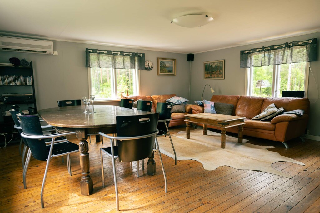 A warm welcome to a cabin for those of you who want peace, proximity to the lake, forest and swimming. The house includes a small oak tree for fishing and swimming. This accommodation provides a nice relaxation with the cabin, which is close to nature without disturbing traffic, where you can go directly into the forest to perhaps see moose, deer, fish and swim. The cottage is close to both Alingsås and Borås, just over 1 hour to Gothenburg by car if you want to discover Liseberg or wander on the Avenyn. The house is at the end of the road, where no one but you comes. Next to the house there are two nice lakes where you can fish for perch, roach and pike. In the yard there is a nice barbecue area for cozy evenings during starry evenings. If you are a good group that wants to get away, this accommodation is recommended for you or for the family that wants to have a good time. The house is older with a mixed interior and the ceiling height is slightly lower, about 195 cm. You enter a small hall with the kitchen directly to the left. The kitchen is from the Swedish 70s with stove, oven, fridge/freezer and most of what you might need. There is a dining area in the living room around a large bridge. There is also a large sofa group with a stove that likes to crackle well. Adjacent is the house's one bedroom with 2 single beds. The stairs up lead you to the house's second bedroom with two bunk beds with a total of 4 beds. Up here is also the house's toilet with sink and shower. In the surrounding area there are plenty of lakes and beautiful nature trails. Pay a visit to Alingsås where Jonas Alströmer became famous for teaching the Swedes to eat potatoes as early as the beginning of the 18th century or pay a visit to Borås which is a mecca for textiles and Borås Zoo for the little ones. A warm welcome to a nice holiday.