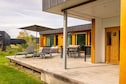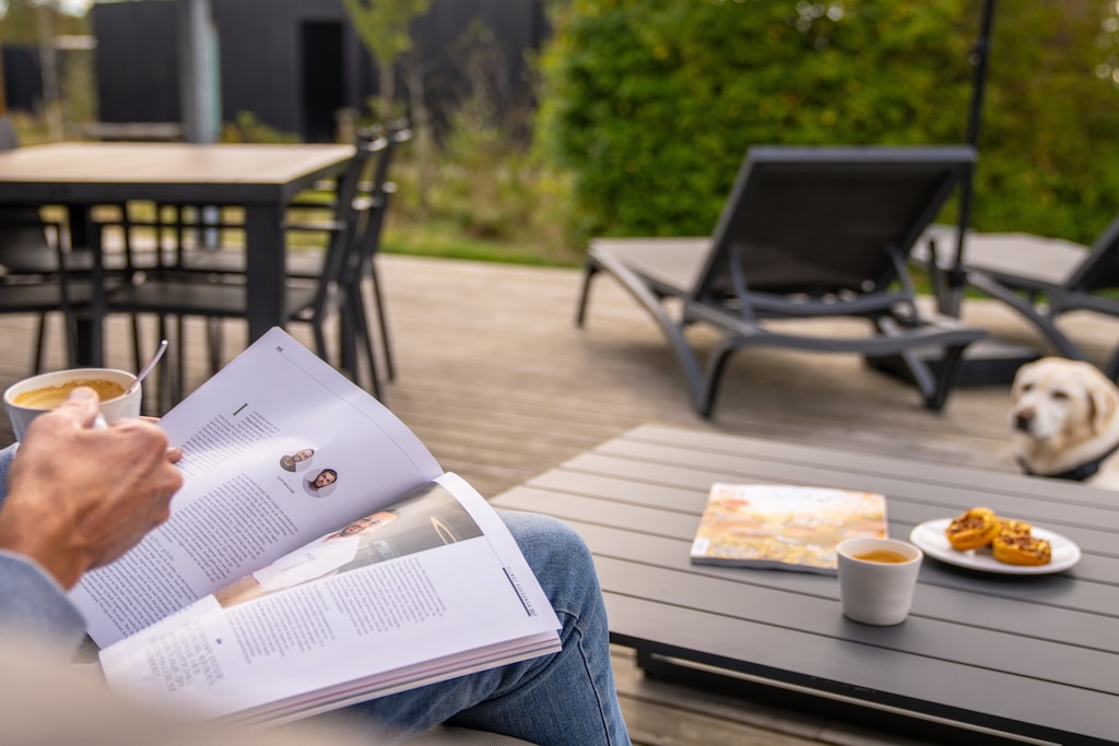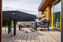 The lodge is modern and fully equipped. In the living room you will find a TV with streaming functions. This allows you to stream apps from your tablet or phone to the TV via your own accounts. The open kitchen includes a combination microwave and a dishwasher. There are two bedrooms with two single box-spring beds each, that may or may not be set up for two people. Both bedrooms have an en-suite bathroom with a walk-in shower and toilet. On hot days, the air conditioning provides extra comfort.