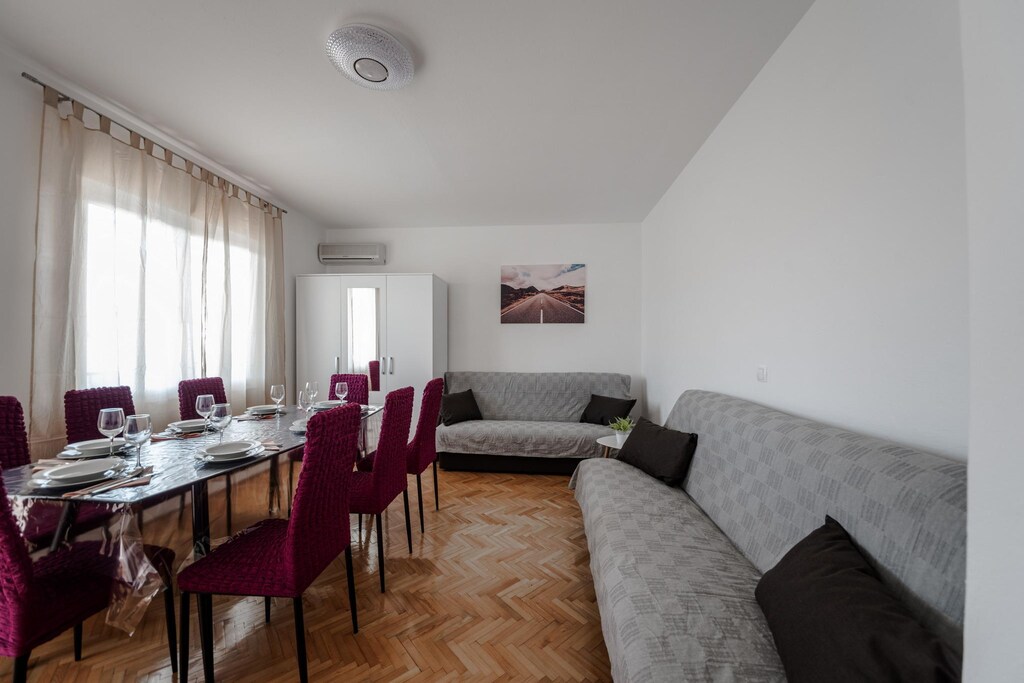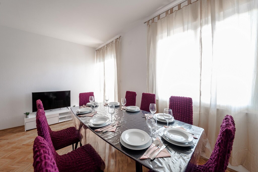 Attività nella zona: sulla parte più meridionale di Velebit, la più grande catena montuosa del massiccio del Dinasic, è il Parco Nazionale di Paklenica, che si estende al mare. Hai uno dei paesaggi più impressionanti direttamente davanti alla porta della tua casa vacanza. Speleologi, scalatori, escursionisti, botanici e escursionisti attivi vengono qui, proprio come i mountain bike. Le attrazioni principali del parco sono i due bellissimi canyons Velika e Mala Paklenica con molte auto insolite Rellias e diverse grotte che scendono dalle altezze sconcertanti al mare. Lì le lunghe spiagge di ciottoli e il mare blu attendono tutti gli appassionati di sport acquatici e per gli amanti sottomarini c'è anche molto da vedere durante lo snorkeling o le immersioni. Sotto i punti salienti dell'area esterna, safari di canos e gite in barca sul fiume Zrmanja. La metropoli culturale Zara può essere raggiunta dopo circa 40 chilometri, il villaggio storico di Nin è a circa 50 chilometri di distanza. Raccomandiamo sia per una giornata interessante.