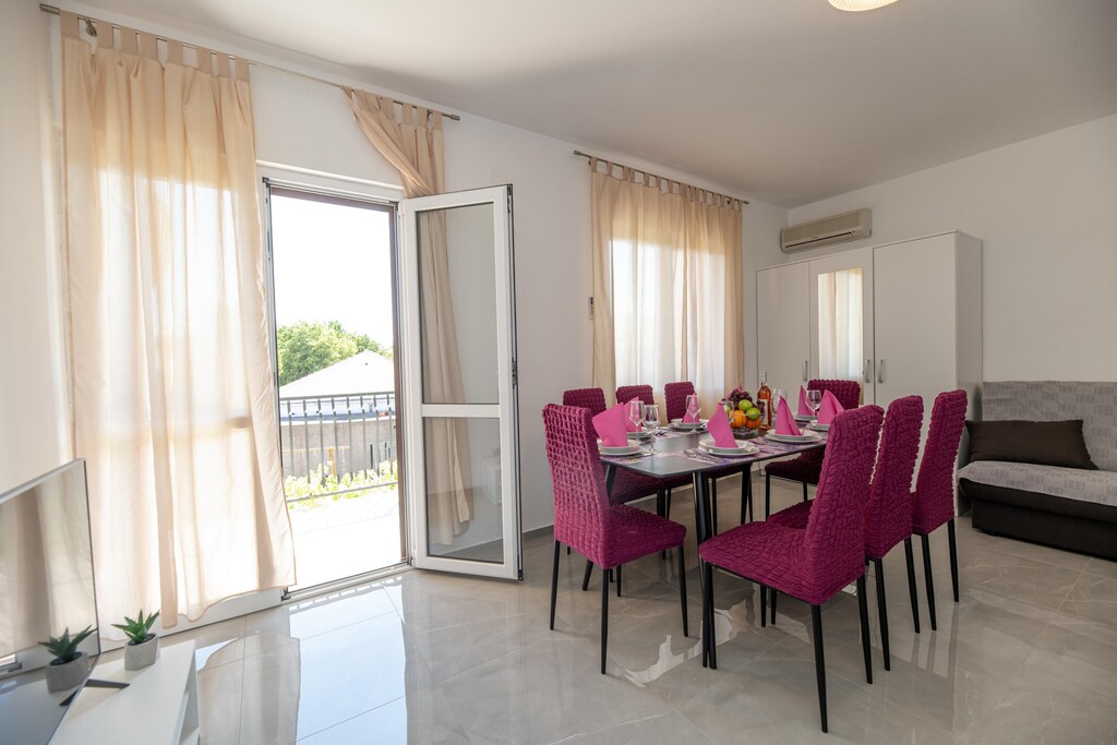 Vicino la strada costiera di Seline e non lontano dalla spiaggia è questa piccola casa privata con 2 buoni appartamenti vacanza arredati. Negli appartamenti spaziosi, che hanno una bella terrazza o balcone, a trovare fino a 9 persone la sistemazione giusta per una rilassante vacanza in famiglia. Il bellissimo giardino offre un sacco di spazio per giocare e una zona barbecue per serate accoglienti. La casa è ideale anche per 2 famiglie che viaggiano.