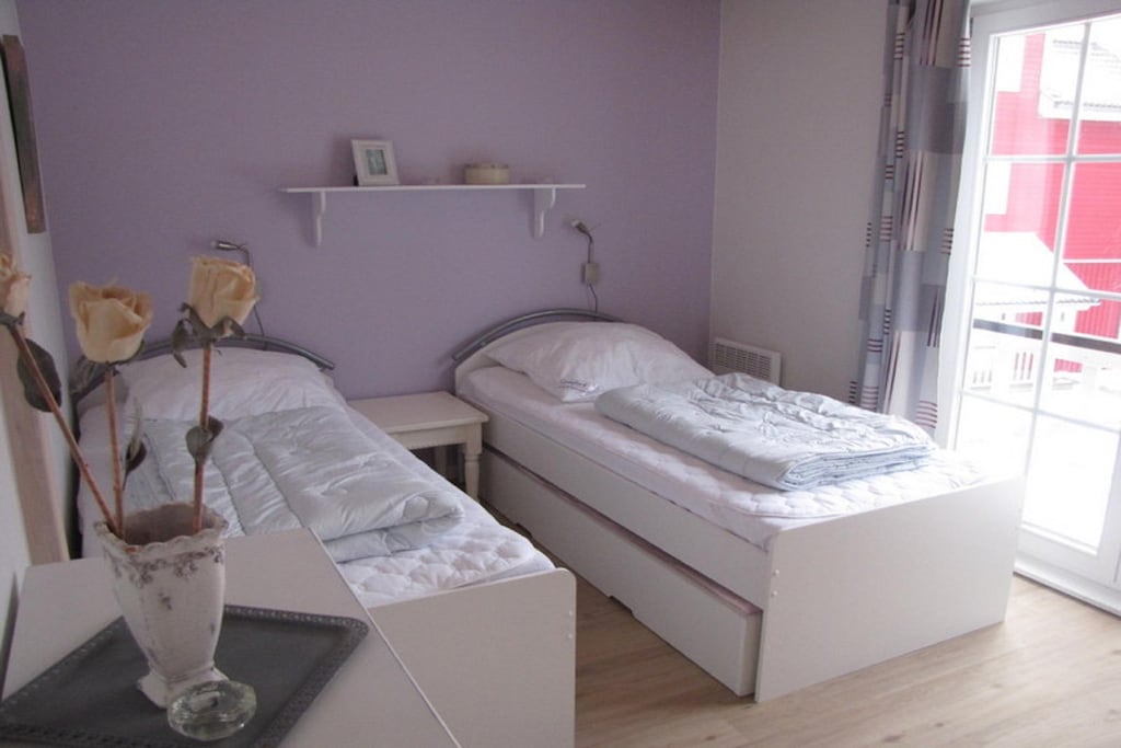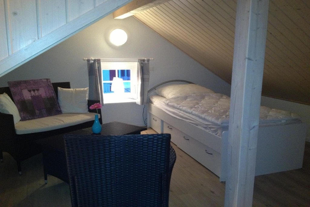 C'è una casa vacanze semi-indipendente a 6 persone (DE-23720-07) adatta per un massimo di quattro adulti e due bambini fino a 12 anni. Questa maestosa casa ha due camere da letto, una al piano terra con un letto matrimoniale e una al primo piano con due letti singoli, sia in un doppio accordo. C'è anche una galleria addormentata aperta in soffitta con due letti singoli o un divano letto nel soggiorno. Ci sono due bagni, uno al piano terra con doccia, WC e sauna. Il secondo bagno è al primo piano.