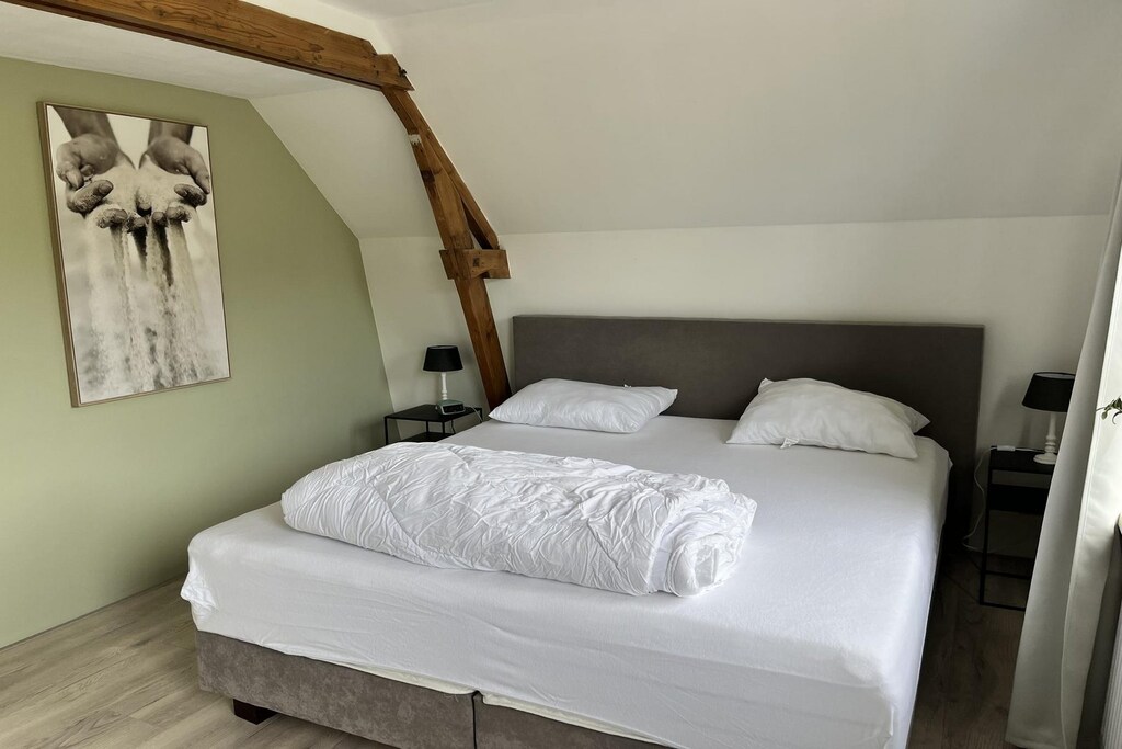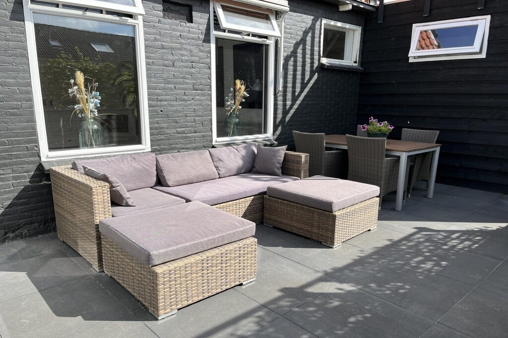 Godetevi un'accogliente terrazza esposta a sud con un set da salotto. Il soggiorno dispone di un divano angolare, una grande TV (canali olandesi/tedeschi) e vista sulla terrazza. Una ripida scala conduce al piano superiore. La moderna cucina dispone di zona pranzo, frigorifero con congelatore, piano cottura a gas, lavastoviglie e forno combinato.