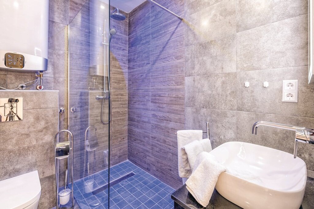 L'appartamento dispone di 2 camere da letto matrimoniali, 1 bagno con cabina doccia, cucina con isola aperta sul soggiorno e terrazza. Tutte le camere con vista mare.