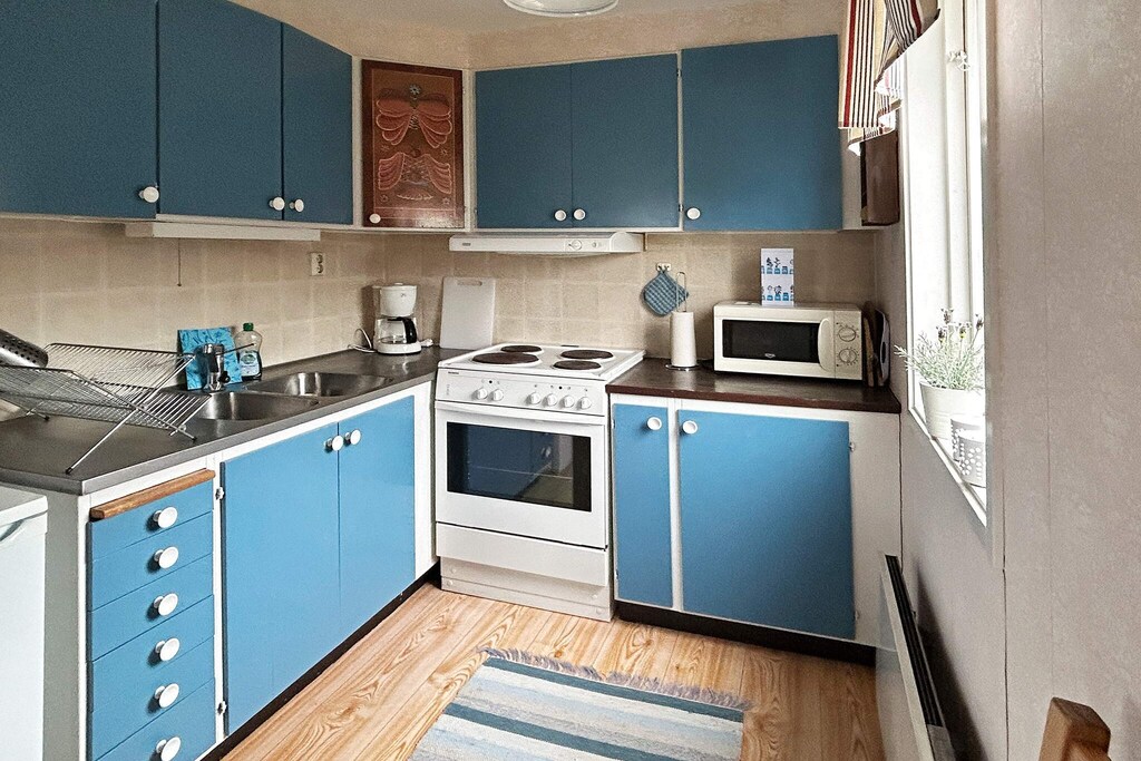Vi accoglie nel soggiorno con un comodo divano che può essere steso per una persona, TV con canali di base svedesi e un tavolo da pranzo che può essere facilmente aperto per pasti condivisi. La cucina aperta è ben attrezzata con fornelli, macchina per il caffè, microonde e frigorifero. C'è un congelatore nel ripostiglio sul retro del cottage. La camera da letto ha due letti a castello e accanto c'è il bagno con WC e doccia. Il cottage per gli ospiti che si trova proprio accanto offre ulteriore comfort con due letti singoli.