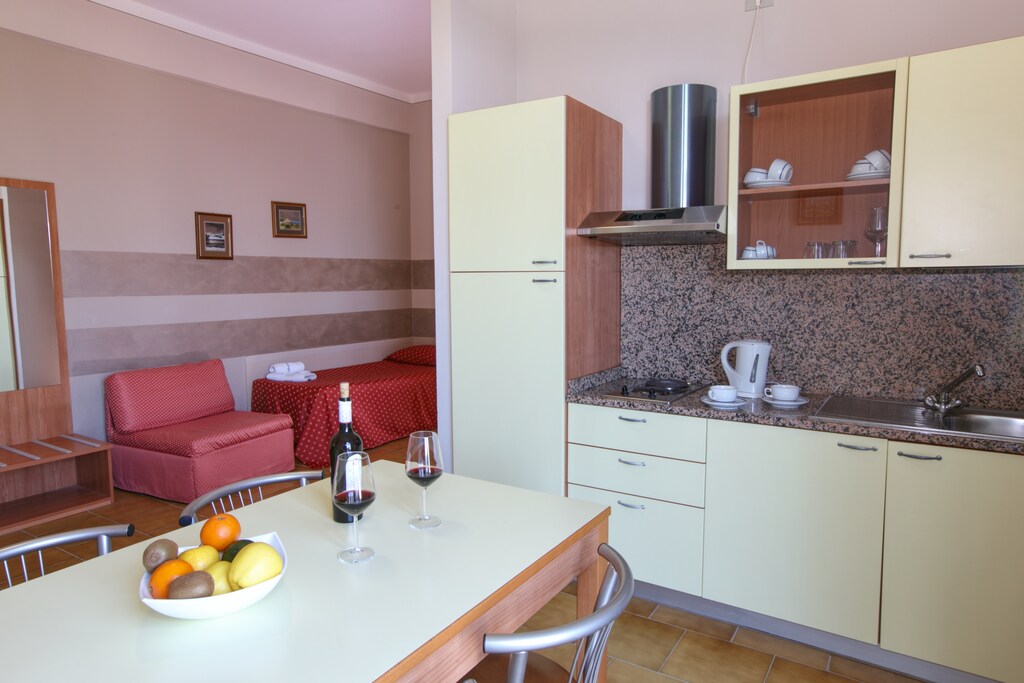 We zijn er 2 weken geweest. Het appartement is bijzonder eenvoudig, het meubilair niet echt gemakkelijk. Beddengoed werd 1x per week gewisseld, handdoeken 2x per week. Het sanitair wel verouderd. Niet genoeg bergruimte voor 4/5 personen bagage. De keuken slecht ingericht, niet genoeg glaswerk/servies. Koken niet uitnodigend. Keukenlinnen was erbij afgesproken: was niet aanwezig, kregen we met een klein beetje tegenzin. Restaurant: slecht! Aankomstdag gegeten: meteen voor gezien gehouden. Overdag onvoldoende open en op zeer onregelmatige tijden (toeval). Zwembad heerlijk en prachtig, genoeg stoelen/ligbanken! Eigenaar niet altijd goed bereikbaar, wel welwillend (als je 'm te pakken kreeg:).