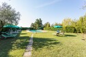 La villa vanta una cucina completamente attrezzata, completa di piano cottura, bollitore elettrico, macchina da caffè, forno e frigorifero con congelatore. L'ampia zona giorno e pranzo comprende un divano letto matrimoniale, TV e tavolo da pranzo. La camera da letto principale offre un comodo letto matrimoniale, mentre la seconda camera dispone di due comodi letti singoli. Un bagno ben arredato è dotato di doccia, lavabo, WC e bidet. Tra i servizi aggiuntivi figurano una lavanderia con lavatrice, un'area fitness attrezzata e una sala ricreativa con tavolo da ping-pong e calcio balilla. All'esterno, gli ospiti possono godere di una terrazza privata, di un giardino in comune attrezzato per il relax e dell'accesso a una piscina stagionale (disponibile da maggio a settembre).