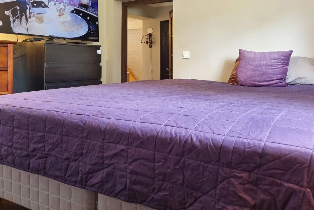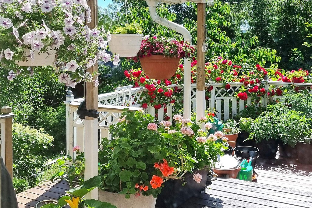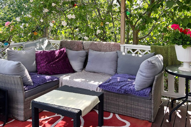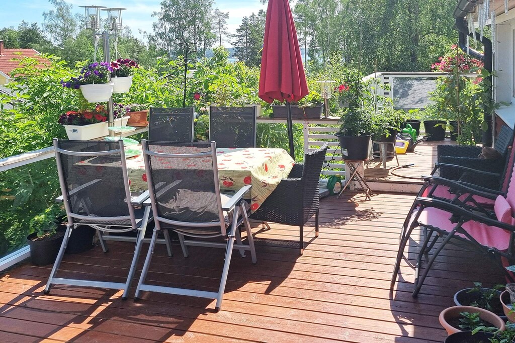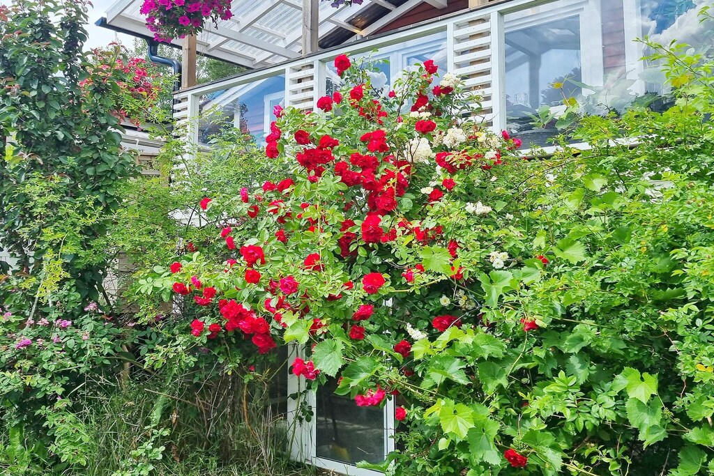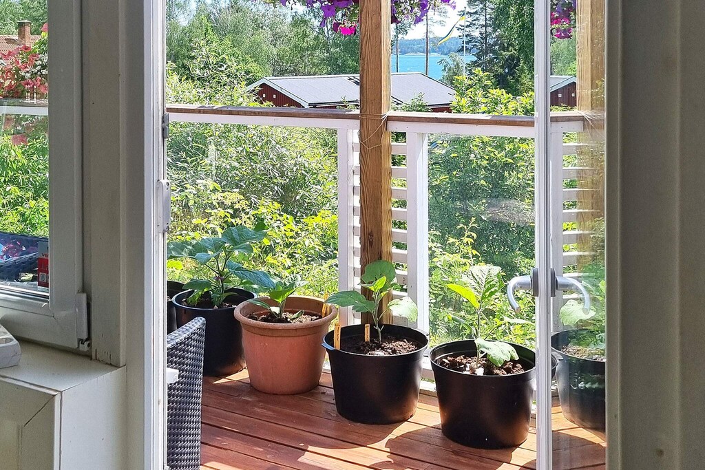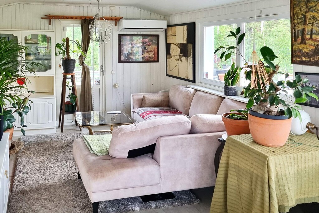 Welcome to cozy Årsta havsbad, an idyll in southern Stockholm, located right by the sea. The house is close to swimming and the boat jetty to Utö, here you have a sea view from the leafy balcony. The owner loves flowers and has built a fantastic oasis of roses and other fragrant and beautiful plants in the garden. There are also apple trees, pear trees, plum trees and cherry trees here, just to pick and eat. There are plenty of tomatoes growing on the large balcony, which you can also enjoy eating. The house is a 2.5-storey souterrain house. The entrance goes via a conservatory into the kitchen (note low ceiling height), from here you also get out into the garden. Half a flight of stairs up you find the two bedrooms, one with a 140cm wide bed and the other with a double bed. On this level there is also a walk in closet and a bathroom with a washing machine. Another half-stair up from here is a living room with access to the balcony. In the living room there is a Smart TV with a sound bar and selection of chanells from Allente. The house has air conditioning. There are several balconies at different levels and in all directions, around the house, totaling over 70 square meters. One is under cover and has lounge furniture and a fridge. On another spacious terrace of 30 square meters there is both a charcoal and a gas grill. In the area there are several nice baths and hiking trails and within walking distance there is a nice restaurant and kiosk. Just below the house is the bus stop. Stockholm city is approximately 30 minutes away by car. There is space to park two cars at the house. Welcome!