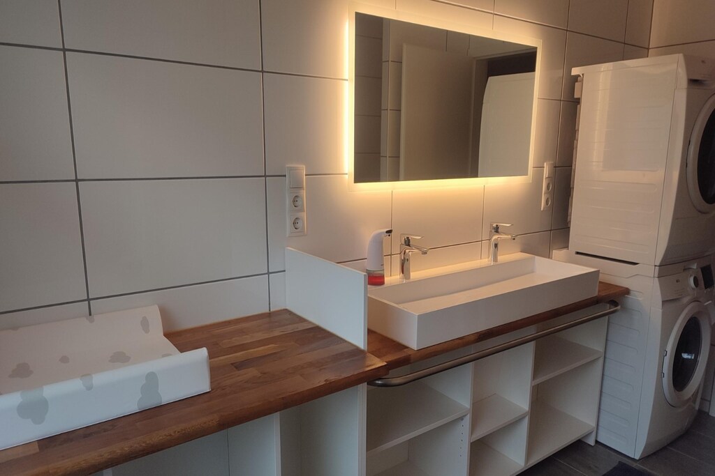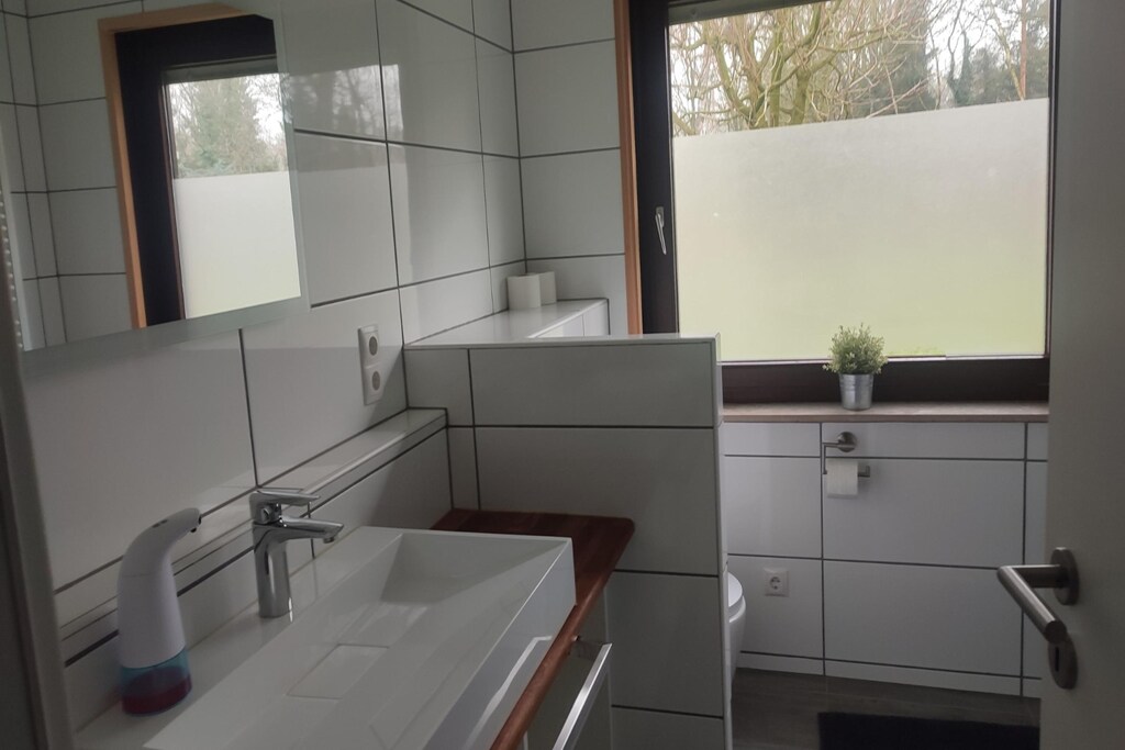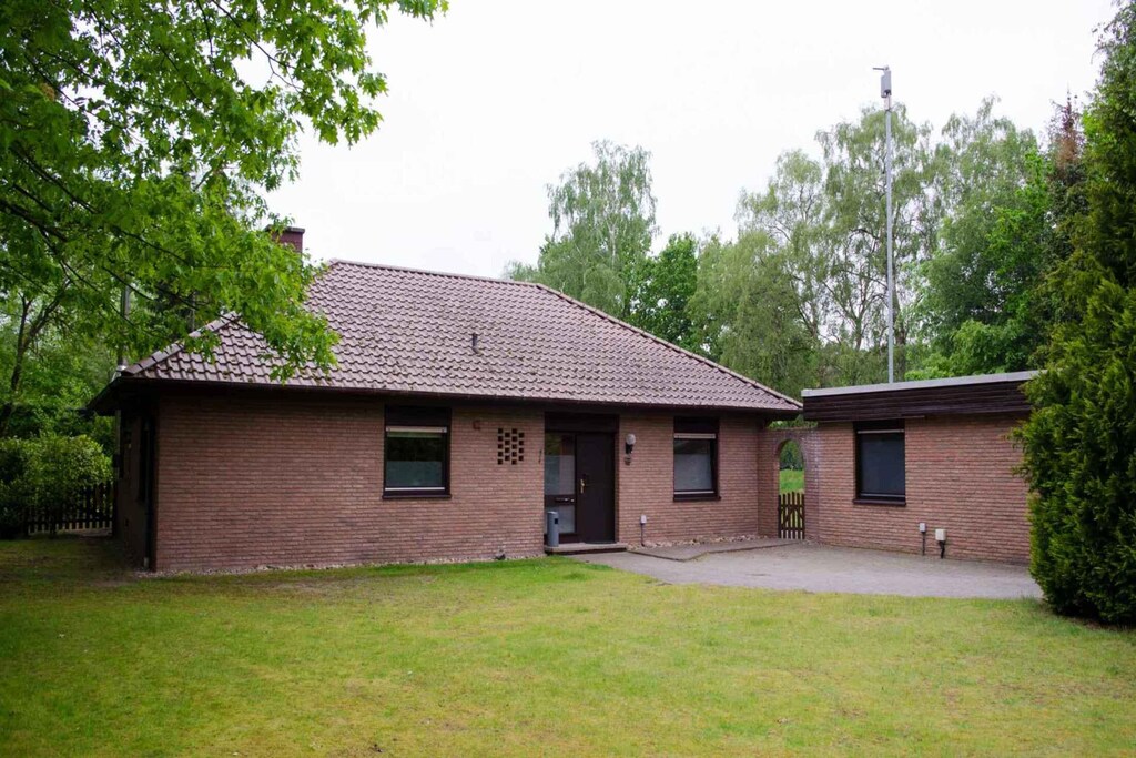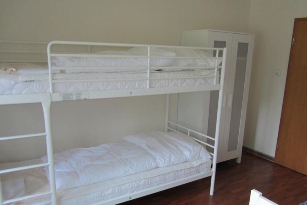 La casa indipendente dell'Holiday Park Grafschaft Bentheim è un rifugio spazioso per famiglie numerose o gruppi, che può ospitare fino a otto adulti e quattro bambini. Situata all'ingresso del parco, offre un ampio terreno e un parcheggio. All'interno, l'accogliente soggiorno dispone di comodi posti a sedere, una zona pranzo e un caldo camino. La cucina aperta include elettrodomestici moderni per preparare comodamente i pasti. Ci sono quattro camere da letto: due con letti matrimoniali, una con un letto matrimoniale e un letto a castello e la quarta con due letti a castello, tutte dotate di piumoni singoli e cuscini per il comfort degli ospiti.