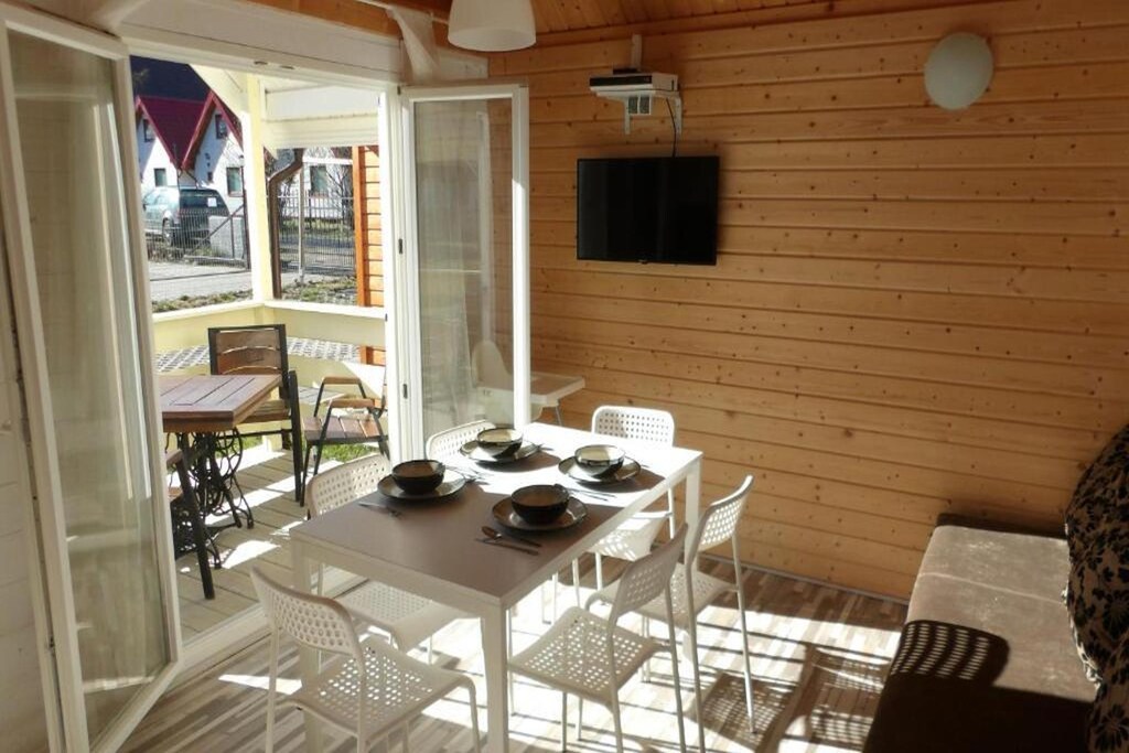 L'accogliente casa vacanze è composta da un soggiorno collegato alla cucina, una camera da letto (2 letti singoli unibili per formare un letto matrimoniale) e un bagno con doccia. Sul soppalco si trova la seconda camera da letto (2 letti singoli che possono essere uniti per formare un letto matrimoniale). Ogni casa ha una terrazza coperta con una serie di mobili da giardino. Riscaldamento elettrico. Internet senza fili disponibile.