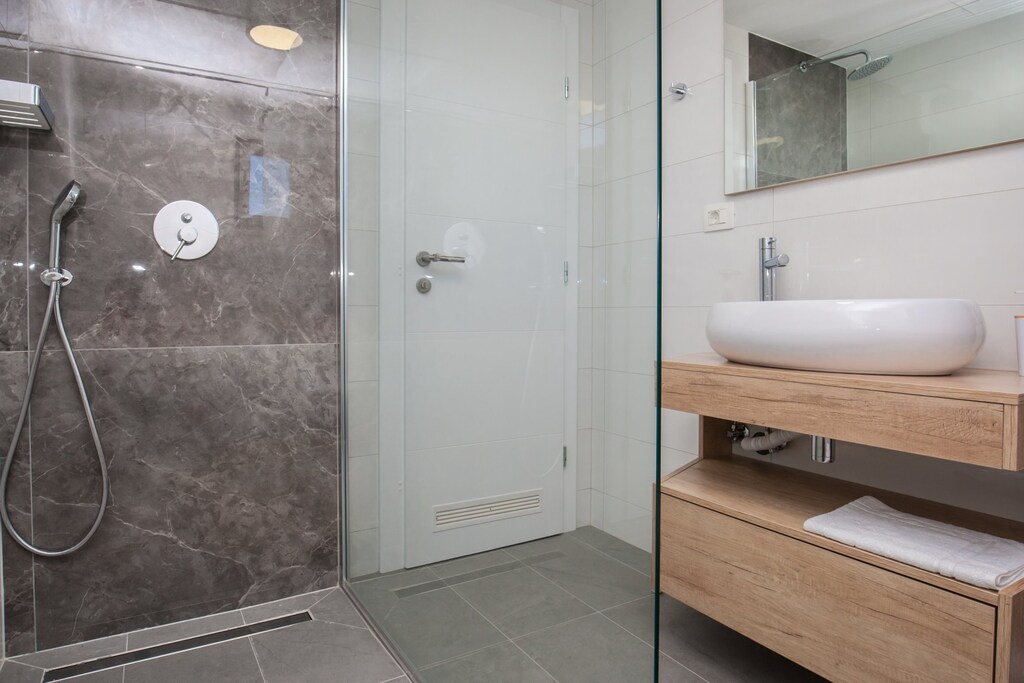 Additional toilet is also available in each apartment. Some of the apartments have a furnished terrace with outdoor furniture and sunbeds.