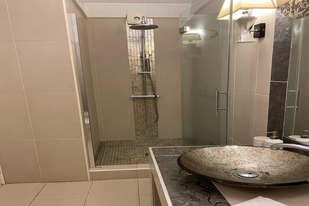 Molto spazioso e pensato con cura, Avevamo tutto ciò di cui avevamo bisogno e l'aria condizionata è stata un vero salvatore durante le giornate calde, Il vicino Hard Rock Cafe è stata un'opzione di ristorazione divertente per le serate
