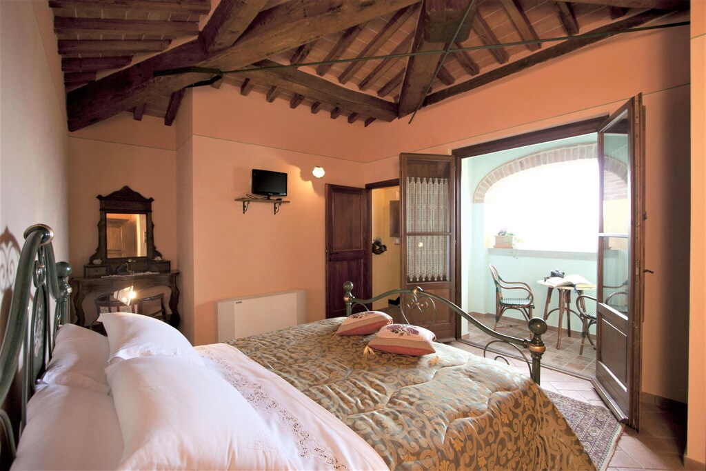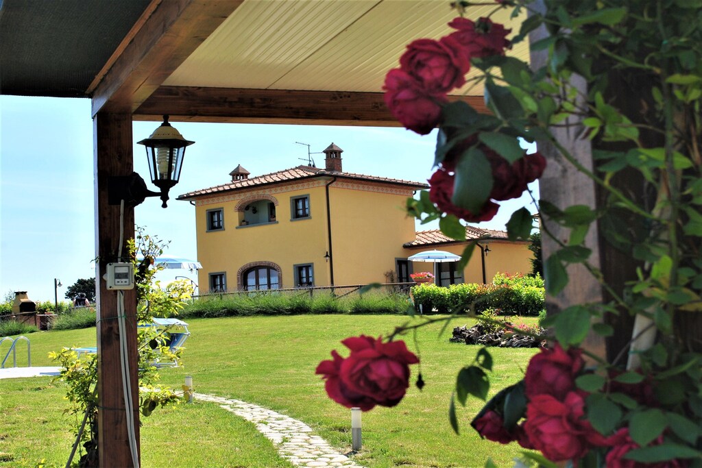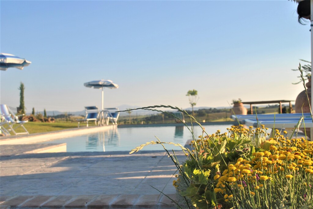 Questa bella villa indipendente di 180 mq con piscina privata offre 4 camere per 8 ospiti e 3 bagni. Siamo nel cuore della Valdichiana, in posizione panoramica da cui si gode di una bellissima veduta sul paesaggio circostante e sulle Leopoldine, storiche abitazioni contadine risalenti al XVII secolo, costruire dal Granduca Pietro Leopoldo di Lorena. Ci troviamo a metà strada tra Cortona(14 km) e Montepulciano(25 km), due bellissimi borghi toscani ricchi di fascino e di storia. La posizione è strategica per raggiungere tutte le più belle attrazioni della Toscana e dell'Umbria con delle comode escursioni giornaliere. Per chi preferisce il relax la villa sarà invece il luogo ideale dove trascorrere piacevoli momenti di quiete all'interno del giardino (completamente recintato) dove troverete un gazebo arredato con salottino da esterno e l'area della piscina 6X12x2,2 a sfioro, recintata) attrezzata con sdraio ed ombrelloni. Completano le dotazioni del giardino una comoda veranda con tavolo da pranzo situata di fronte alla porta d'ingresso ed un barbecue per cucinare i vostri pasti all'aria aperta. A vostra disposizione anche una zona lavanderia con ingresso indipendente ed un parcheggio. La Villa è parte dell’aziende agrituristica a conduzione familiare, tra le quali spiccano per qualità le produzioni di olio, vino e miele oltre a una piccola produzione di frutta e verdura di stagione.