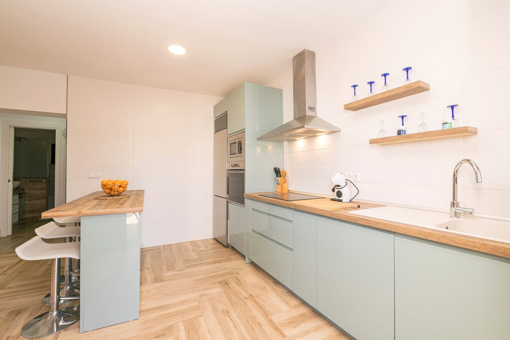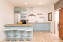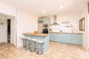Entrate in una luminosa villa su un unico livello che combina un'accogliente zona giorno con una cucina completamente attrezzata. Un bancone con sgabelli rende la condivisione dei pasti informale e invitante, mentre l'aria condizionata mantiene l'ambiente fresco d'estate. Due camere matrimoniali e un moderno bagno con doccia garantiscono notti di riposo. Per le famiglie, sono disponibili una culla e un seggiolone, mentre servizi come lavatrice e asse da stiro aggiungono comfort quotidiano.