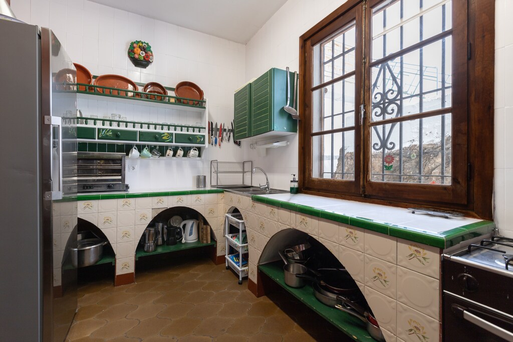 Wewnątrz tego parterowego domu masz do dyspozycji duży salon otwarty na jadalnię, który wyposażony jest w Smart TV oraz efektowny kominek, grill i piec opalany drewnem, który Cię zaskoczy i nada rustykalnej atmosfery, która charakteryzuje ten dom. Kuchnia gazowa posiada wszystkie niezbędne sprzęty do wygodnego gotowania. Przed snem możesz wybierać pomiędzy czterema sypialniami, doskonale wyposażonymi, aby Twój pobyt był jak najbardziej przyjemny. Pierwsza sypialnia wyposażona jest w łóżko małżeńskie, druga w łóżko małżeńskie i dwa łóżka pojedyncze, a pozostałe dwie w każde po łóżko podwójne i łóżko pojedyncze. Obiekt obsługują dwie łazienki z prysznicem. Będą mogli korzystać z wentylatorów, grzejników, pralki, żelazka i deski do prasowania, które znajdą w obiekcie. Jeśli podróżujesz z dzieckiem, możemy zapewnić Ci łóżeczko i krzesełko do karmienia.