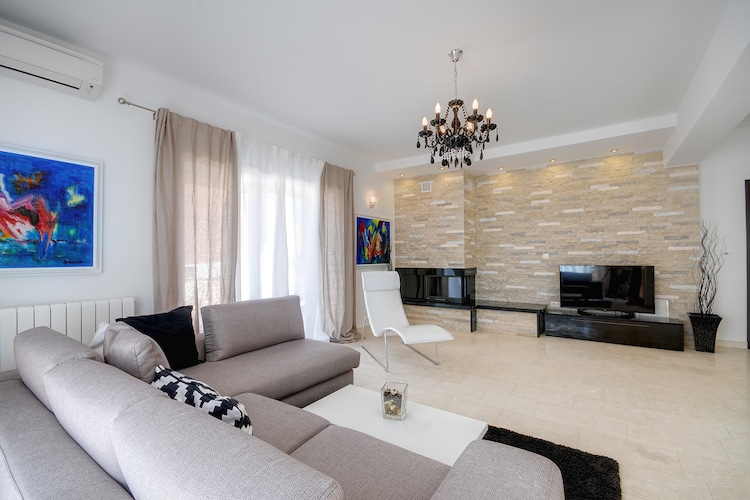 Questa villa si trova alla periferia del villaggio di Rovinjsko Selo e offre 3 camere da letto. È ideale per una vacanza rilassante con la famiglia o gli amici. Avrete a disposizione una terrazza solarium con piscina privata, lettini e doccia esterna. Il giardino con piante mediterranee si affaccia sui dintorni e sul mare.