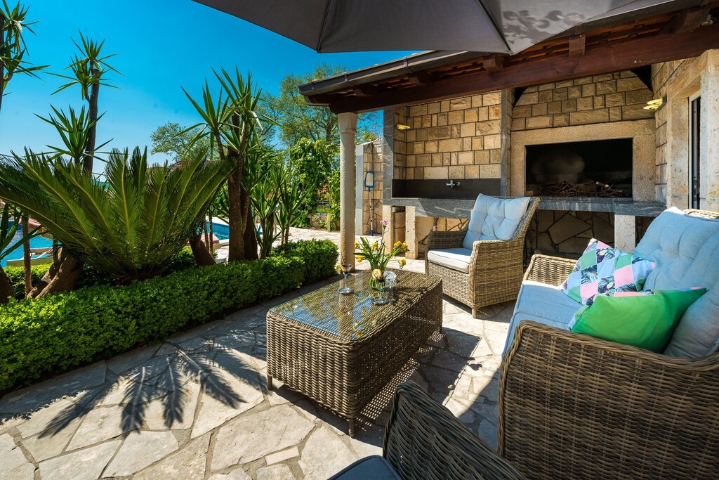 Villa Mia will provide you with spacious terrace with a private swimming pool and sunbeds. This villa is perfect for relaxing family or friends vacation. It also has a magnificent sea view